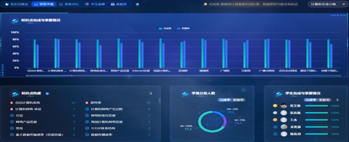 打破“理论抽象难理解、实验操作受局限、学情诊断不精准”的传统困境,QY千亿国际王军教授带领《计算机网络》国家级一流课程团队进行智慧课程建设,构建起“AI 深度赋能 -仿真平台支撑 -数据精准驱动”的三维智能教学体系。将人工智能技术全面融入教学全过程,推动课程从“知识传授”向“能力培育”的系统性跃迁。