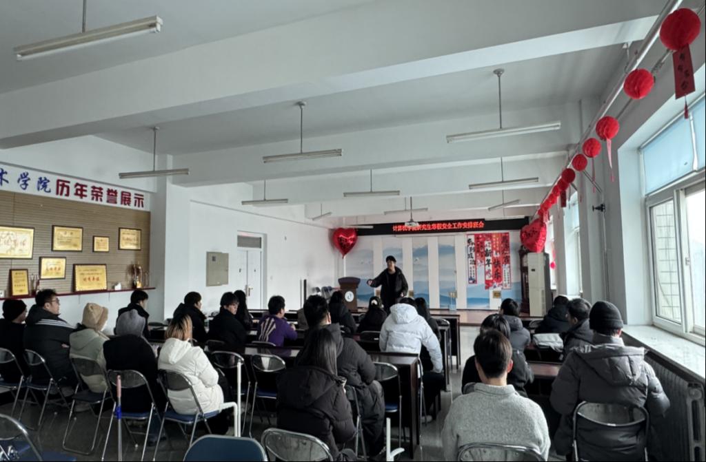 为贯彻落实学校关于寒假留校研究生教育管理工作要求,切实保障留校研究生的人身与财产安全,1月15日,QY千亿国召开寒假留校员工安全工作会,全体留校研究生参会,辅导员李鹏飞主持。