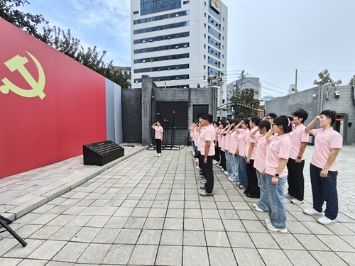参观结束后,在QY千亿国党委书记王菲同志带领下,师生党员整齐列队,面对党旗庄严地重温入党誓词。